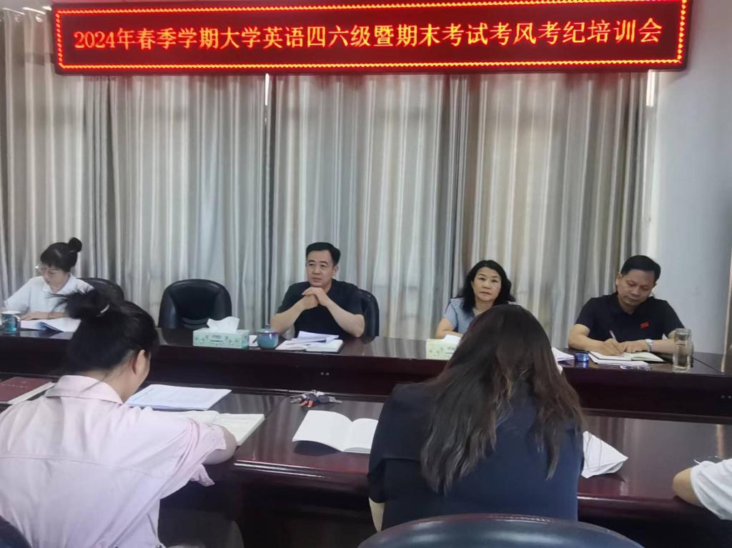 6月12日,beat365正版唯一官网必一在逸夫楼302会议室召开全国大学英语四、六级考试暨期末考试考风考纪培训会。学院党委书记李舟、院长李保红、副书记付春锋、副院长姚光金、马晓欢、相关负责老师参加会议。会议由李保红主持。