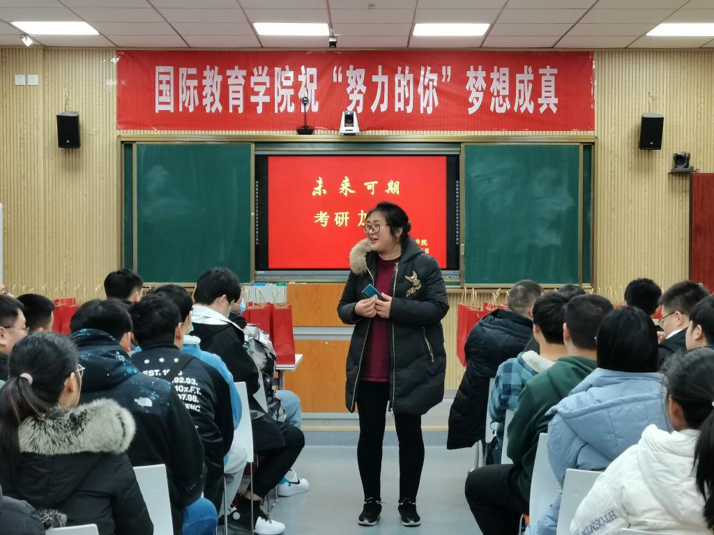 活动伊始,党委副书记姚新春代表学院领导班子发言,他指出同学们备考很辛苦,希望大家在考研奋战时,也要照顾好自己的身体。考研的最后一程,学院一直在你身边,愿努力的你,成就最好的你。