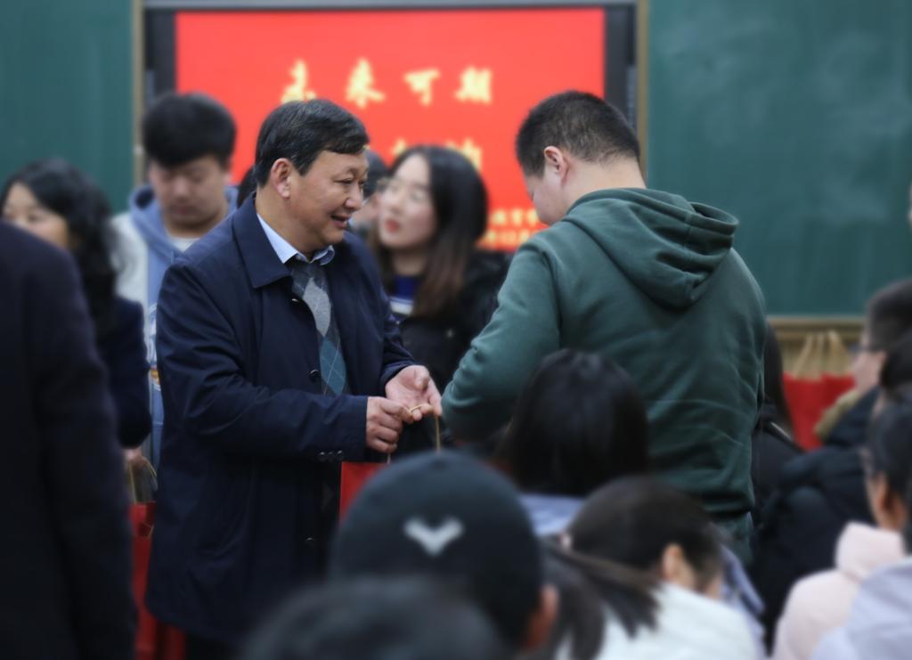 随后,党委书记张震、院长李保红、副院长何英干和芦永德为考研学子们送上了暖心礼物,用新颖特别的方式表达全院师生对考研学子们的殷切关怀和衷心鼓励。张震书记与学院2019届学生会副主席李明洋、闫宸铭等学生亲切交谈,了解近况。