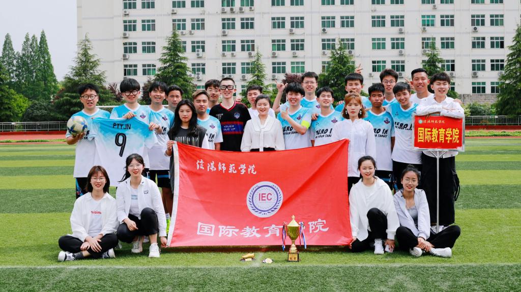 传承足球美,飞扬学子情。5月7日正午,beat365正版唯一官网必一第三届“绿茵杯”足球赛决赛在校西操绿茵场进行。国际教育学院男足代表队在比赛中一举夺得冠军。