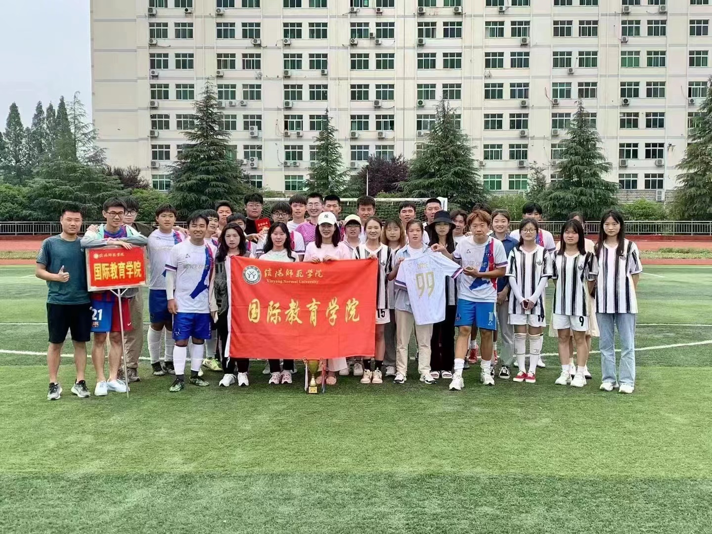 5月22日,由地理科学学院主办的“青春杯”七人制足球比赛顺利结束。beat365官网以男足亚军,女足进入四强的优异成绩顺利结束比赛。本届足球比赛分为两个阶段。第一阶段采取单循环的方式,所有球队按照积分净胜球、进球数和相互胜负关系的顺序进行总排名。第二阶段排名前四的球队交叉进行单淘汰赛,获胜队进入决赛,失败队争夺第三名。