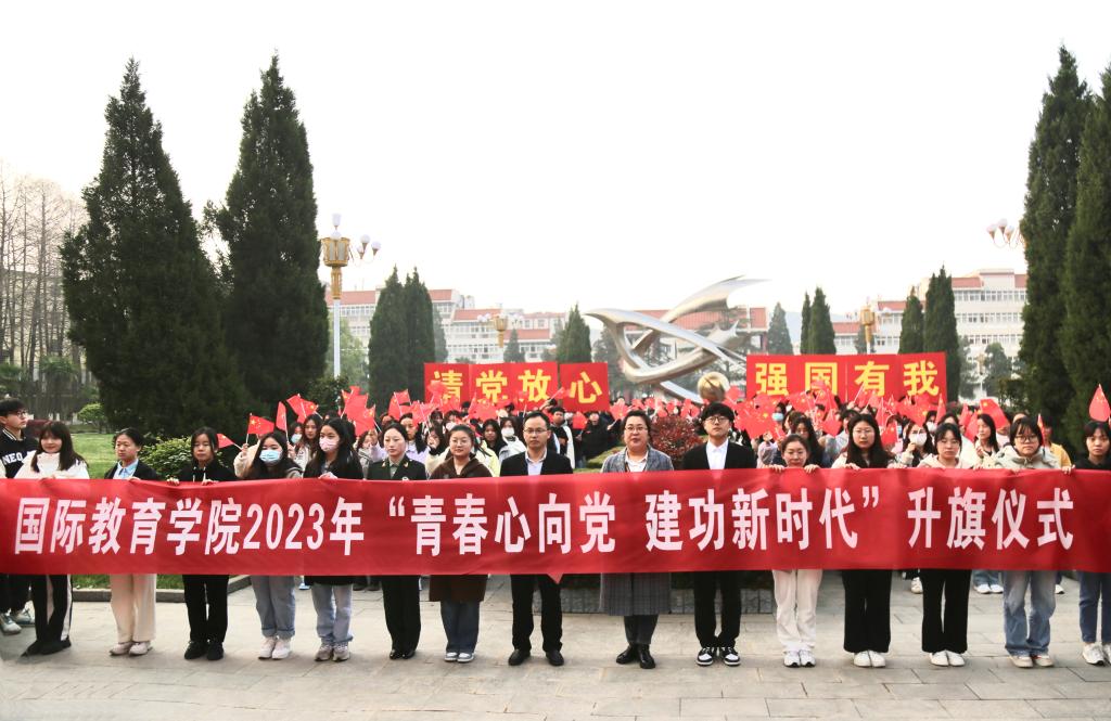 上午6:30,国旗护卫队队员迈着矫健的步伐护送国旗进场,伴随着《义勇军进行曲》的旋律,五星红旗冉冉升起,在场师生庄严肃立,面向国旗行注目礼。仪式现场,团委书记许孟杨带领全体共青团员重温入团誓词,激励青年团员坚定理想信念、练就过硬本领,让青春在火热实践中绽放绚丽之花。武装干事沈艳霞领读学习习近平总书记在中国共产党第二十次全国代表大会上的重要讲话金句。随后,院学生会主席徐浩然、学生代表朱晨曦、魏志源相继在国旗下发言。