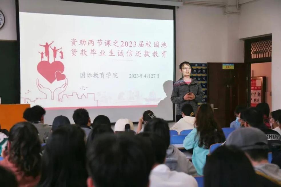 为认真贯彻落实《教育部财政部关于进一步加强学生资助政策宣传工作的通知》文件精神,促进学院国家助学贷款工作良性运转,方便有还款意愿的贷款毕业生在离校前还款,维系同学们良好的个人征信,确保2023届助学贷款毕业生还款工作顺利进行,beat365官网于4月27日下午6点在逸夫楼207教室开展资助政策宣讲“两节课”之2023届校园地贷款毕业生诚信还款教育活动。