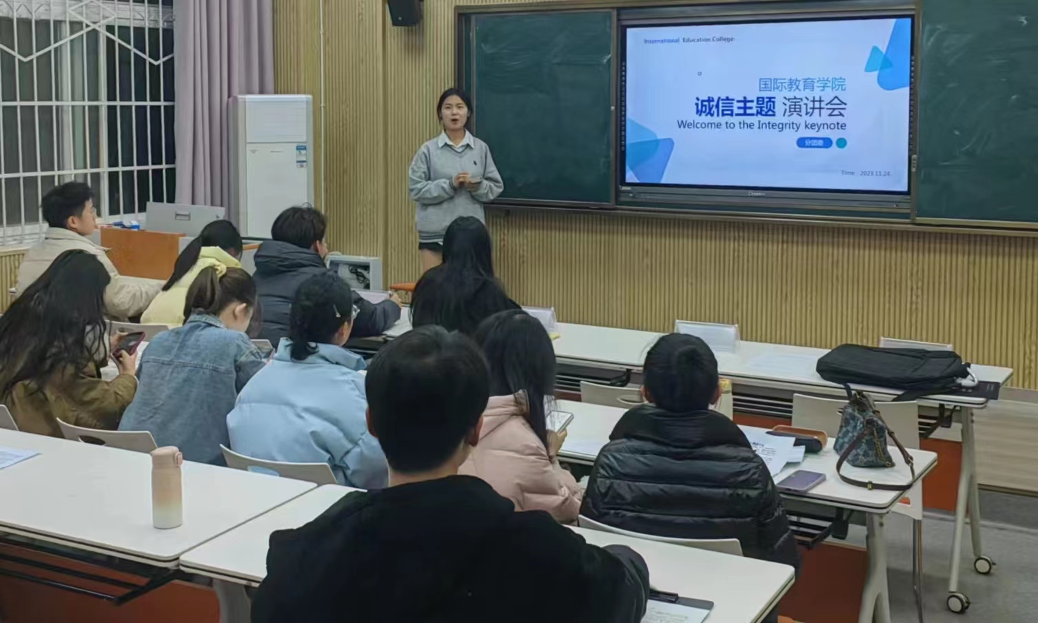 为深入贯彻落实习近平新时代中国特色社会主义思想,大力培育和践行社会主义核心价值观,传承和弘扬诚信文化,引导广大青年学生树立诚实守信、自立自强的人生观,beat365正版唯一官网必一于2023年11月24日在逸夫楼201教室举办诚信演讲会活动。