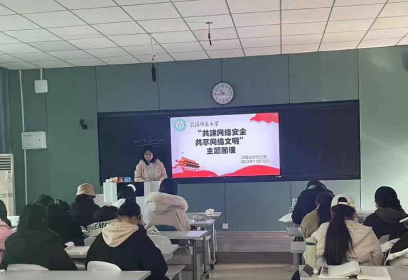12月3日上午,会计学专业团支部组织开展了“共建网络安全,共享网络文明”主题团课,凝聚正气,弘扬新风。主讲人立足于信息化发展战略、国家大数据战略、“互联网+”行动计划等,对网络安全的具体内容进行阐明讲述,使得同学们了解更多的网络安全知识,认识到网络安全的重要性,提高了网络安全意识,预防网络诈骗。