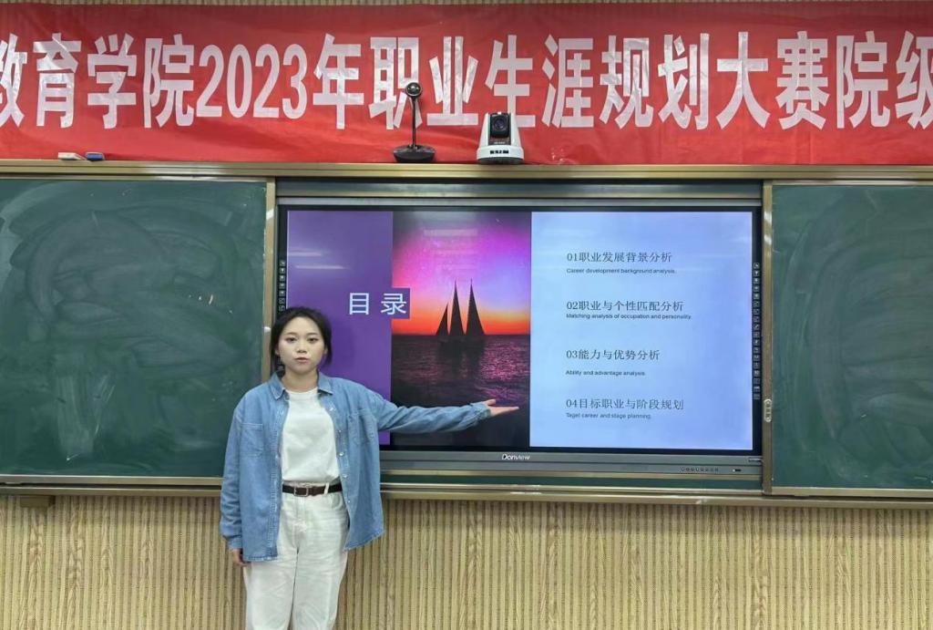 参赛选手现场结合PPT进行演讲,介绍了对个人、职业的探索和职业目标的选择及规划,讲述了在实现职业目标中已实施的具体行动和成果,思路清晰,目标明确,准备充分,为观众做出了良好的示范。本次参赛的作品多以教师、会计、管理等为职业对象,结合自己专业和兴趣进行论述,展现了学生对自己职业规划能力和就业能力的理解,并进一步提出未来发展方向,为实现今后创业就业打下坚实的基础。