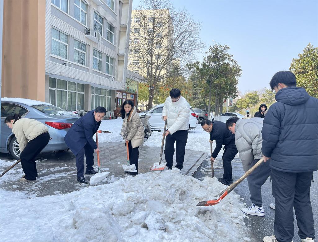 近日,信阳市连降暴雪,校园道路出现低温积雪致路面结冰现象。为有效应对低温雨雪冰冻天气影响,保障全体师生出行安全,beat365正版唯一官网必一号召全院师生积极参校内扫雪铲冰行动。