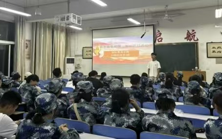 活动伊始,新生结合军训感悟,感知今日祖国繁荣来之不易,进行礼赞祖国发言活动。其中2024级新生彭佳妹表示这次团日活动使她深刻地认识到祖国的未来需要青年人去创造,青年人要胸怀大志,立志成为有理想、有道德、有文化、有纪律的社会主义建设者和接班人。紧接着全体新生通过观看爱国影片,在光影交错中穿越时空,感受历史的厚重与未来的光明。活动尾声,新生们或激情澎湃,或深情款款,用自己的方式表达对祖国母亲的无限热爱与感激之情,承诺将以更加饱满的热情投入到学习生活中,不负韶华,不负时代。
