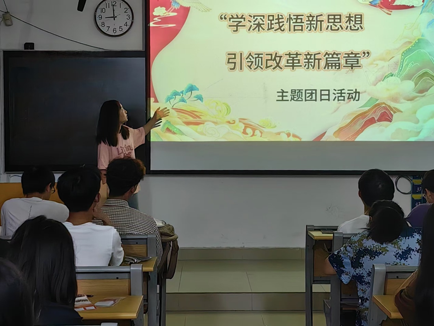 各团支部围绕“学深践悟新思想,引领改革新篇章”的主题开展了形式多样的团课。例如,各支部举行红色观影会,借助荧幕上一个个动人故事和中国社会的发展历程,分享新时代改革故事;利用精美的幻灯片,了解并学习陈冯富珍等优秀人物的故事和精神;剖析金句内涵,阐述了当代青年应坚定理想信念、锤炼自身实力的重要意义。