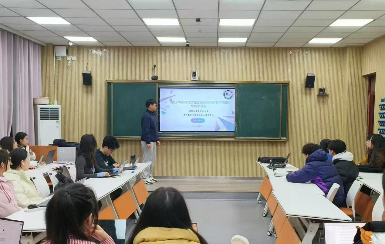 会上,beat365官网主席团成员秦开正带领与会人员学习了《关于巩固高校学生会改革成果的若干措施》文件,强调了学生会应坚定政治方向,当好桥梁纽带,密切联系同学,常态化反映同学需求。同时,学生会还需注重自身建设,提升服务质量,创新组织模式,强化考核评价,确保学生会工作的规范化、科学化。