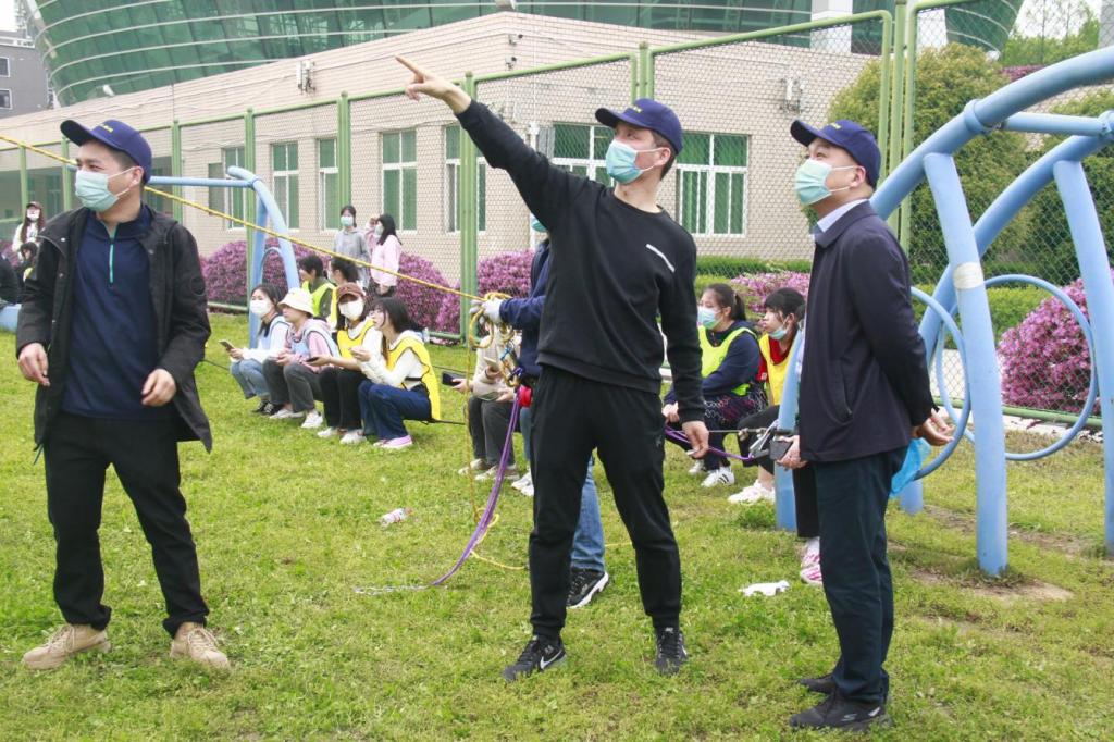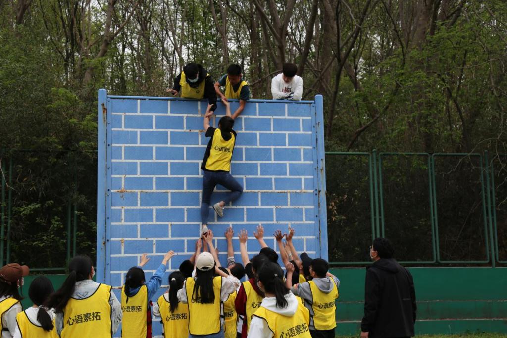 经过“花开花落”、“逛公园”等热身活动,同学们被分为两组在青年广场参与拔河和跳大绳比赛,队员们默契配合,商量战术,相互鼓气,充分发挥了团队合作的优势。随后,在三位教练员的带领下,同学们进入心语拓展园内开展素质拓展活动,依次体验了“高空行走”、“紧急逃生墙”、“信任背摔”等拓展项目,同学们开动脑筋,齐心协力完成了一次次的挑战,展现了beat365官网学子互帮互助的良好风貌。最后,参与活动的全体师生在心语拓展园前合影留念。