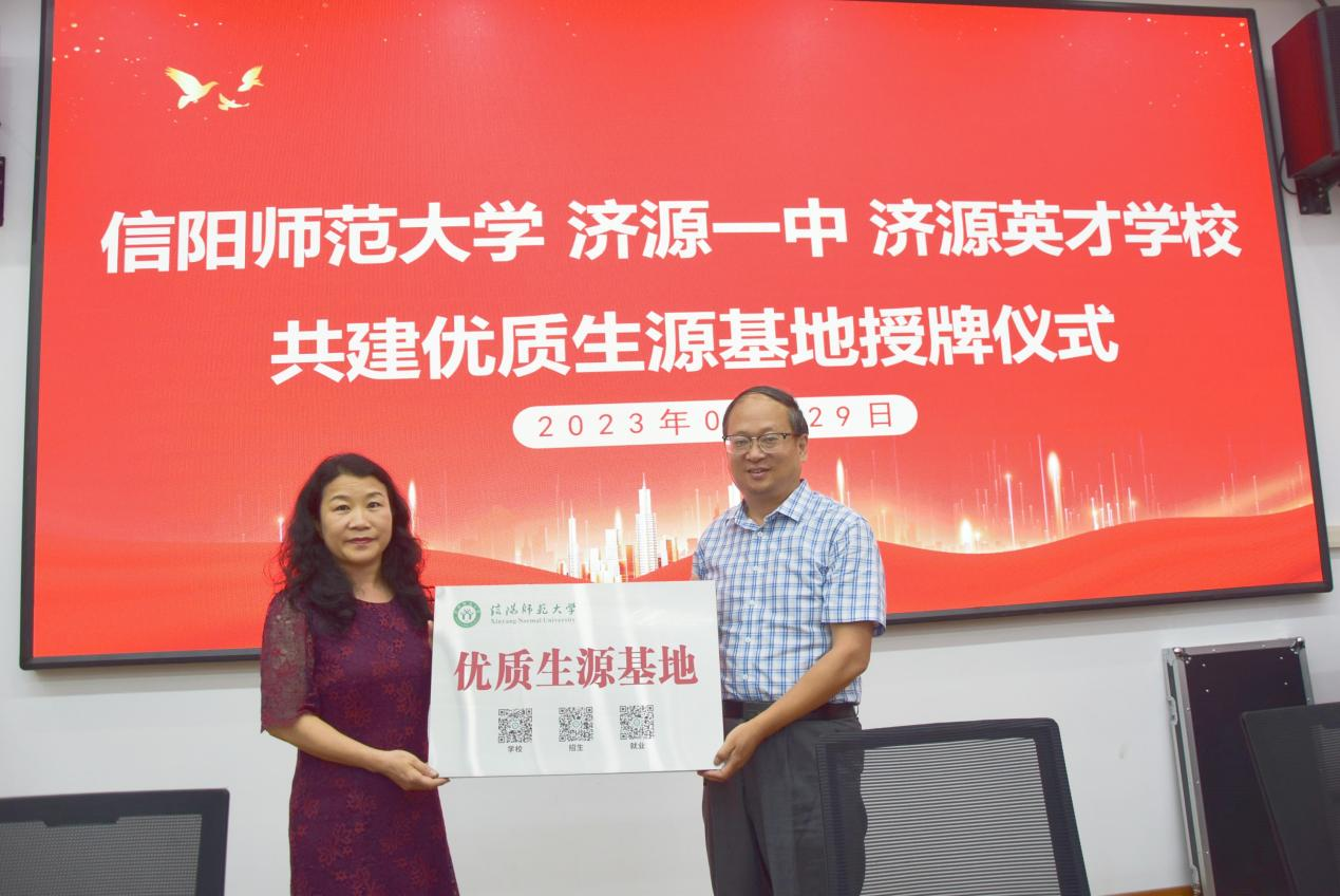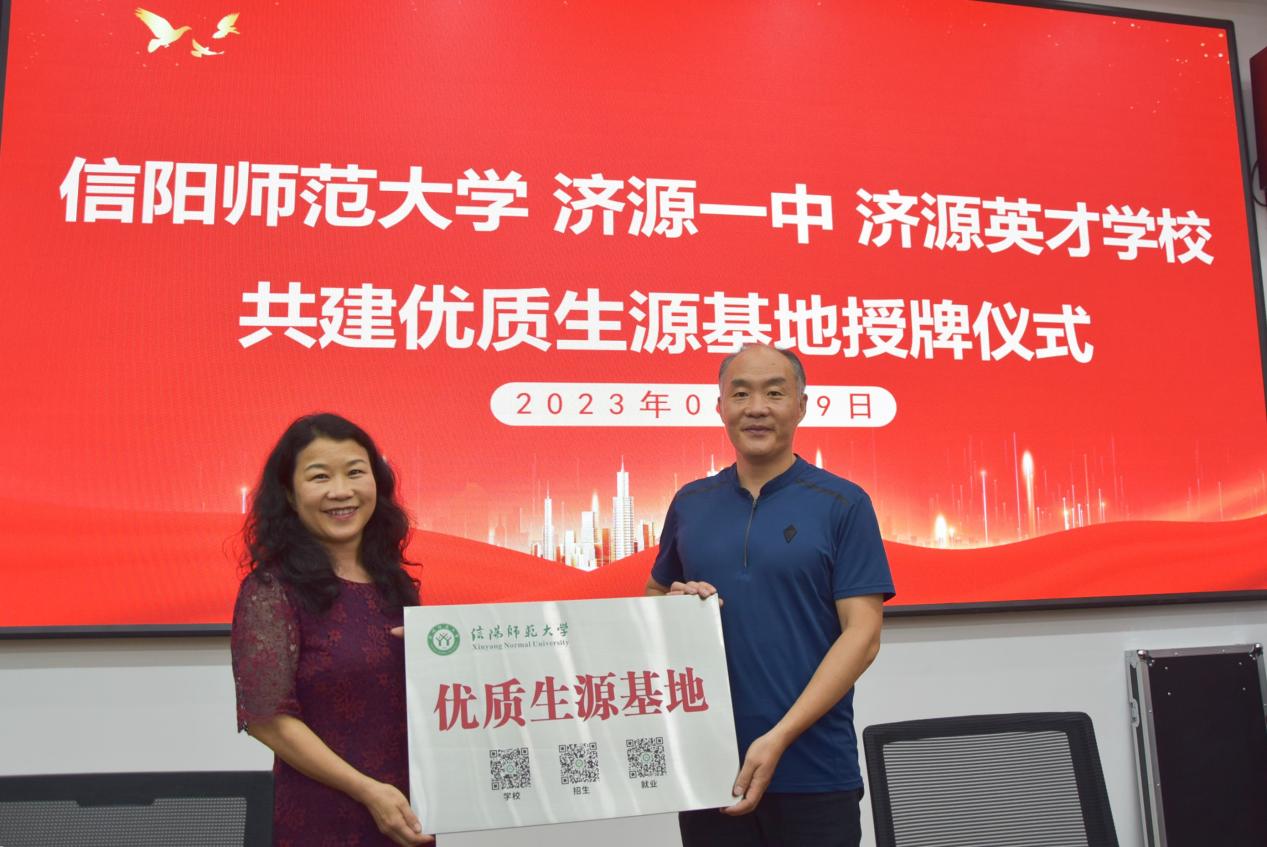 李保红对信阳师范大学的办学历史、办学条件、专业设置情况、人才培养情况、毕业生就业情况等做了详细介绍,高度评价了济源一中、济源高级中学、济源英才学校的办学理念和办学特色。她指出,共建“优质生源基地”是学校精准招生的重要举措,也是促进校地合作交流的重要平台,济源各中学与信阳师范大学在育人目标等方面存在相似之处,双方合作具有坚实基础,希望双方以此次交流合作为良好开端,加强优质生源基地建设,进一步完善校地合作双赢长效机制,共同助力高质量人才培养。