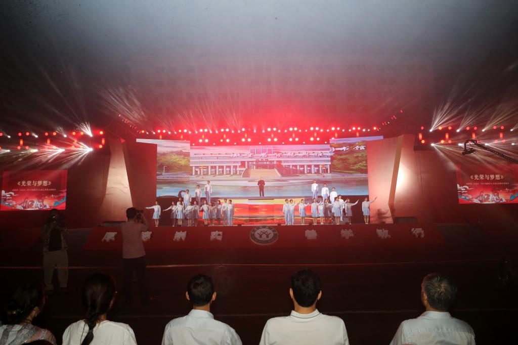 最后,由校党委书记王文鹏创作、师生深情朗诵的长诗《光荣与梦想》将整场晚会推向高潮,带领毕业生重温信阳师范大学四十八年的光荣与梦想,也激励广大师生坚定理想信念,步履铿锵地从信阳师范大学再出发,开启新的征程,开创新的荣光。