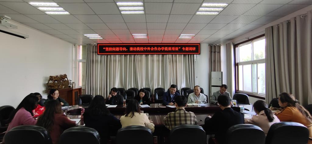 调研分别围绕“坚持问题导向,如何推动我校中外合作办学提质增效”、“如何有效提高学生外语水平,促进中外合作办学健康持续发展”以及“如何做好新时期党建工作,助推中外合作办学事业又好又快发展”等问题展开。