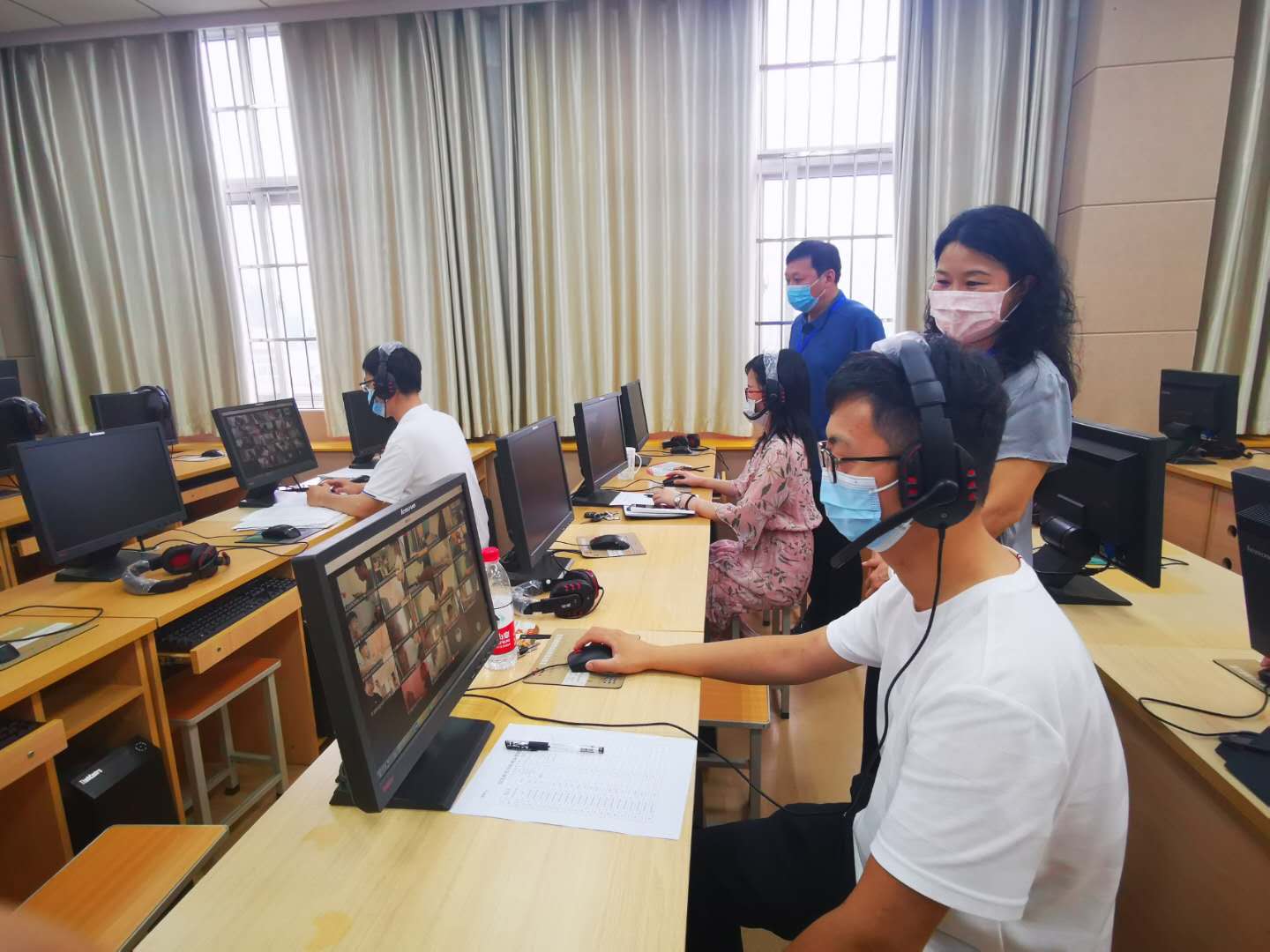 国际教育学院2019-2020学年第二学期期末线上考试于6月29起全面展开。学院领导对期末考试考务工作高度重视,自6月29日起,beat365官网党政领导班子及教学部相关同志分期分批到逸夫楼301语音实验室对期末考试线上集中监考工作进行巡视。