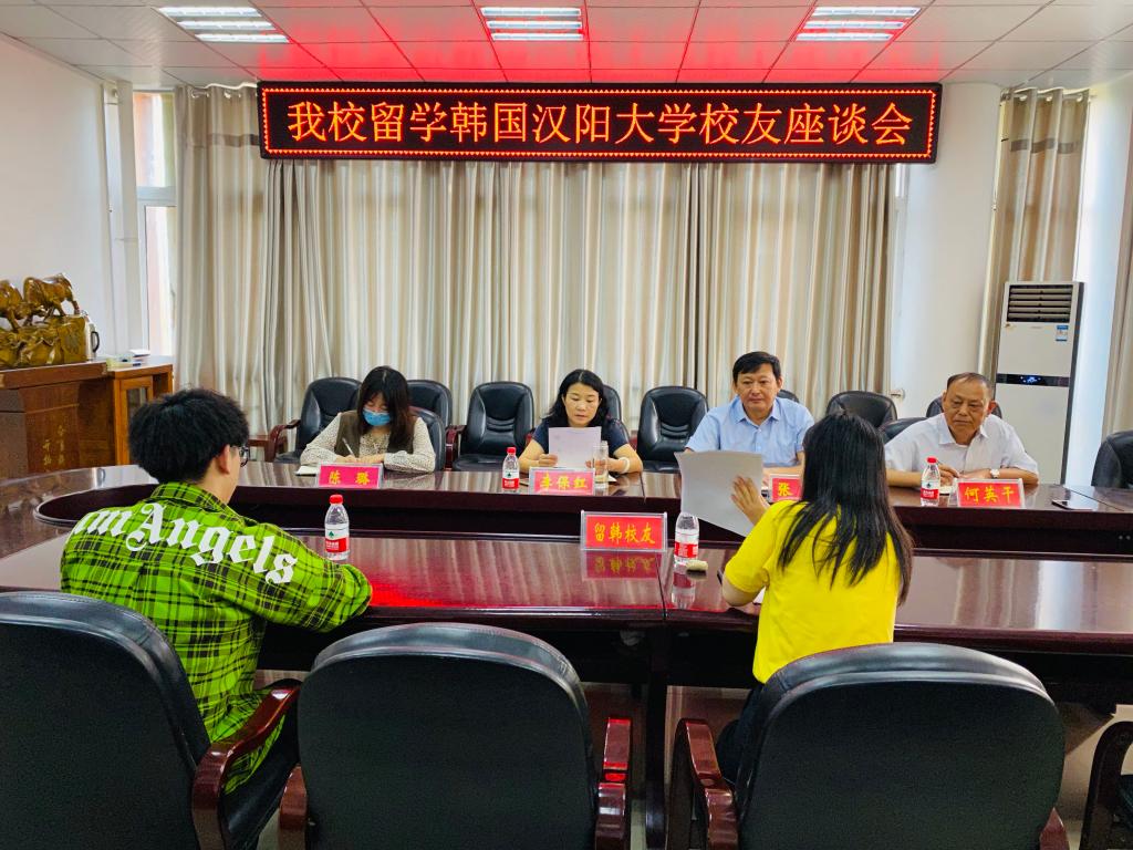 为不断提升学校国际化办学水平,更好地服务学生出国留学工作,9月11日,beat365正版唯一官网必一在逸夫楼302会议室召开留学韩国汉阳大学校友座谈会。党委书记张震、院长李保红、副院长何英干以及留学韩国汉阳大学归来的2013级、2014级毕业生代表参加本次座谈会,会议由出国留学指导中心主任陈璐主持。