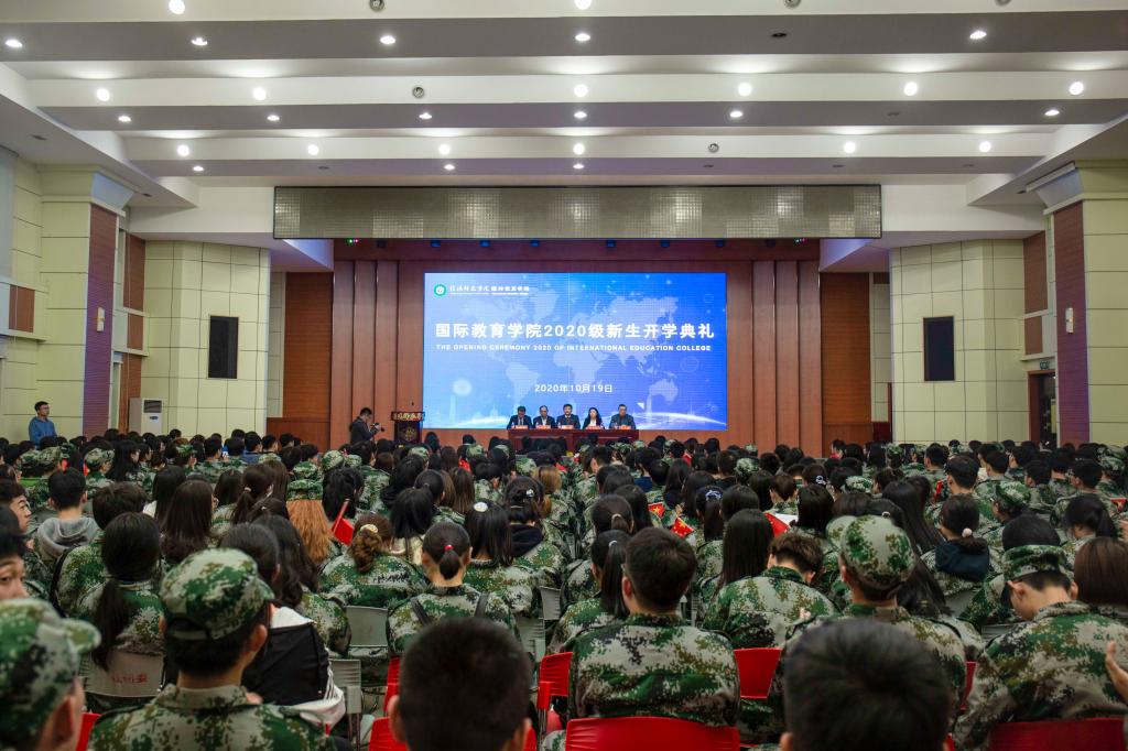 10月19日晚,beat365正版唯一官网必一2020级新生开学典礼在逸夫楼报告厅隆重举行。学院党委书记张震,院长李保红,副院长何英干、芦永德,党委副书记姚新春,全体教师及2020级新生参加典礼。典礼由姚新春主持。