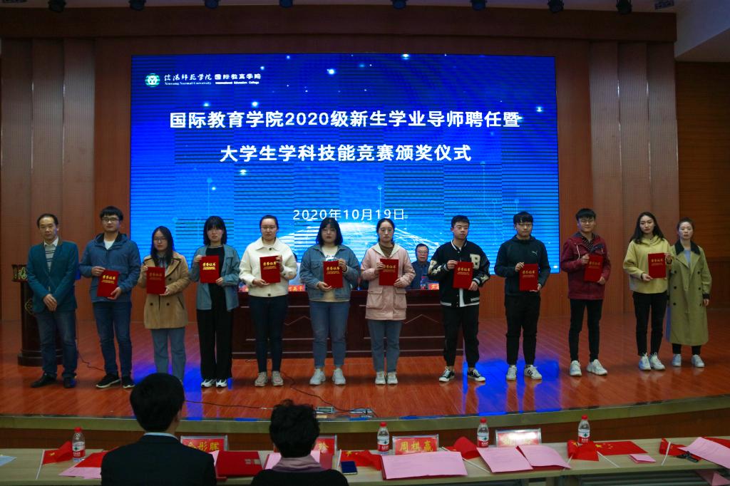 随后,何英干宣读了在全国大学生英语竞赛、全国大学生英语写作比赛等外语学科竞赛以及生命科学竞赛、财会职业大赛、创新创业比赛等专业实践技能竞赛中获奖的学生名单,4名学业导师分别为优秀学子颁发证书并合影留念。