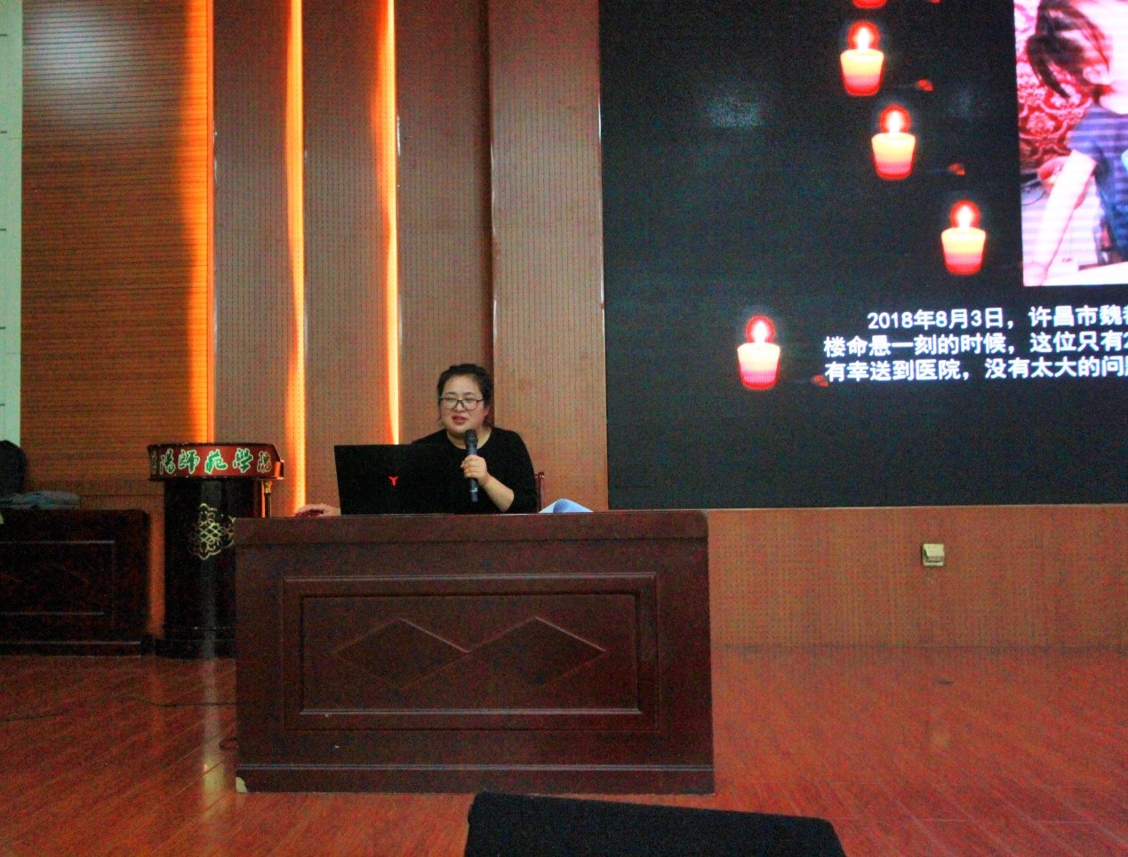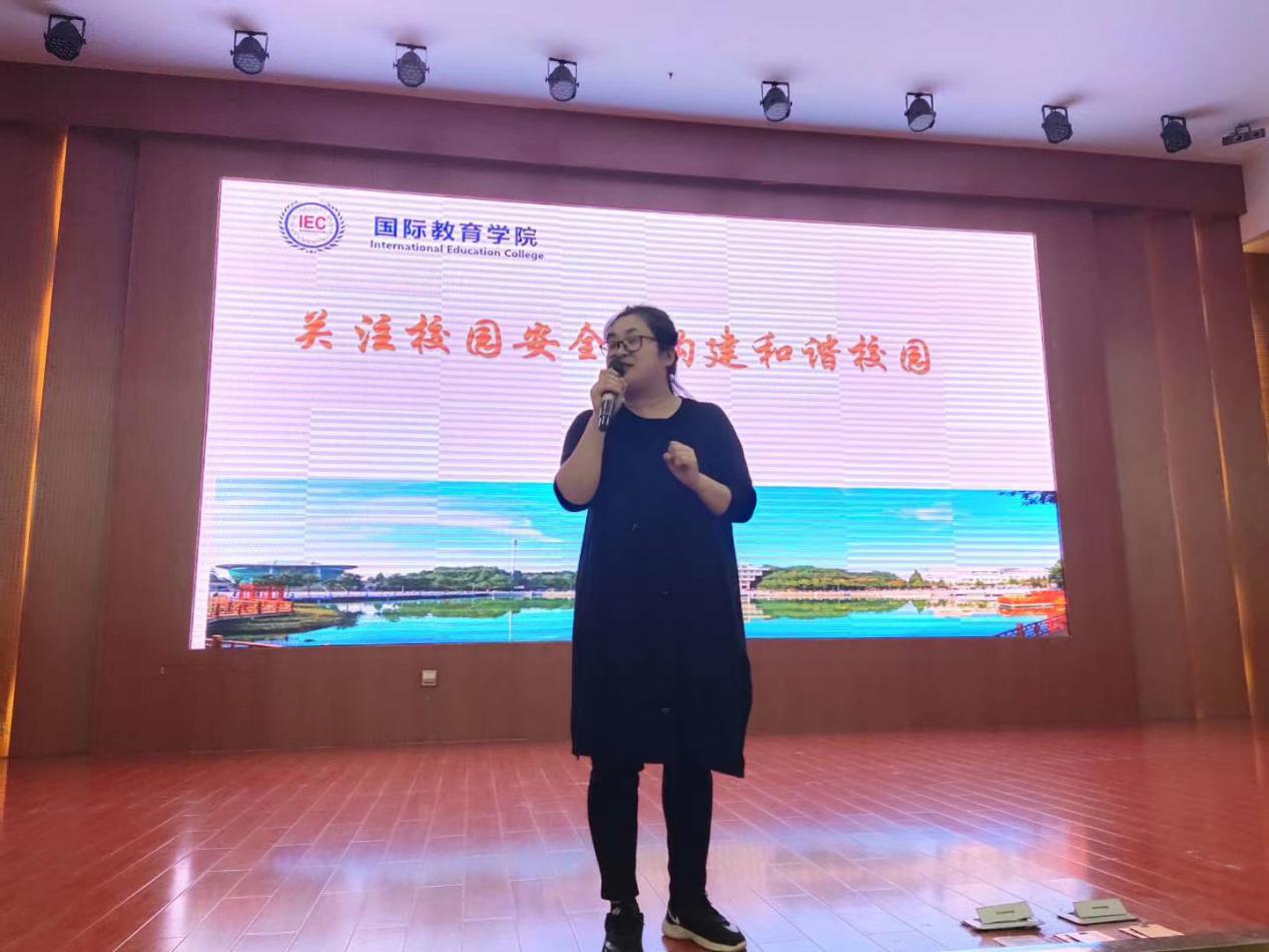 沈艳霞围绕消防安全、人身财产安全、电信网络诈骗以及交通安全四个方面的内容,采用现场互动的方式让学生主动参与其中,诙谐幽默的语言,让学生在掌声和欢笑声中牢牢记住了各类安全知识及防范方法,充分调动了学生积极性,现场气氛十分活跃,学生热情持续高涨。宿舍安全用电是预防校园火灾的重要举措,沈艳霞通过列举因违规用电造成宿舍起火的多起触目惊心的案例,引起学生重视,并牢记各类宿舍禁用电器;财产安全关乎每位学生的切身利益,沈艳霞通过分析宿舍防盗、公共场所防盗、财务防骗等具体实例,生动讲解了财产安全保护的注意事项;大学生社会阅历尚浅,防范意识较弱,容易受到电信网络诈骗。沈艳霞通过列举身边真实发生的网络“刷单”诈骗案件,让学生深刻认识到网络诈骗蛊惑性较强、无缝不入,切实增强自身安全防范意识;交通安全也是校园生活中一个不容忽视的关键问题。沈艳霞以2020级新生骑电动车摔伤致使半张脸毁容的惨痛事例,严肃告诫全体学生提升安全意识,牢记交通规则。