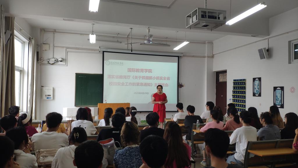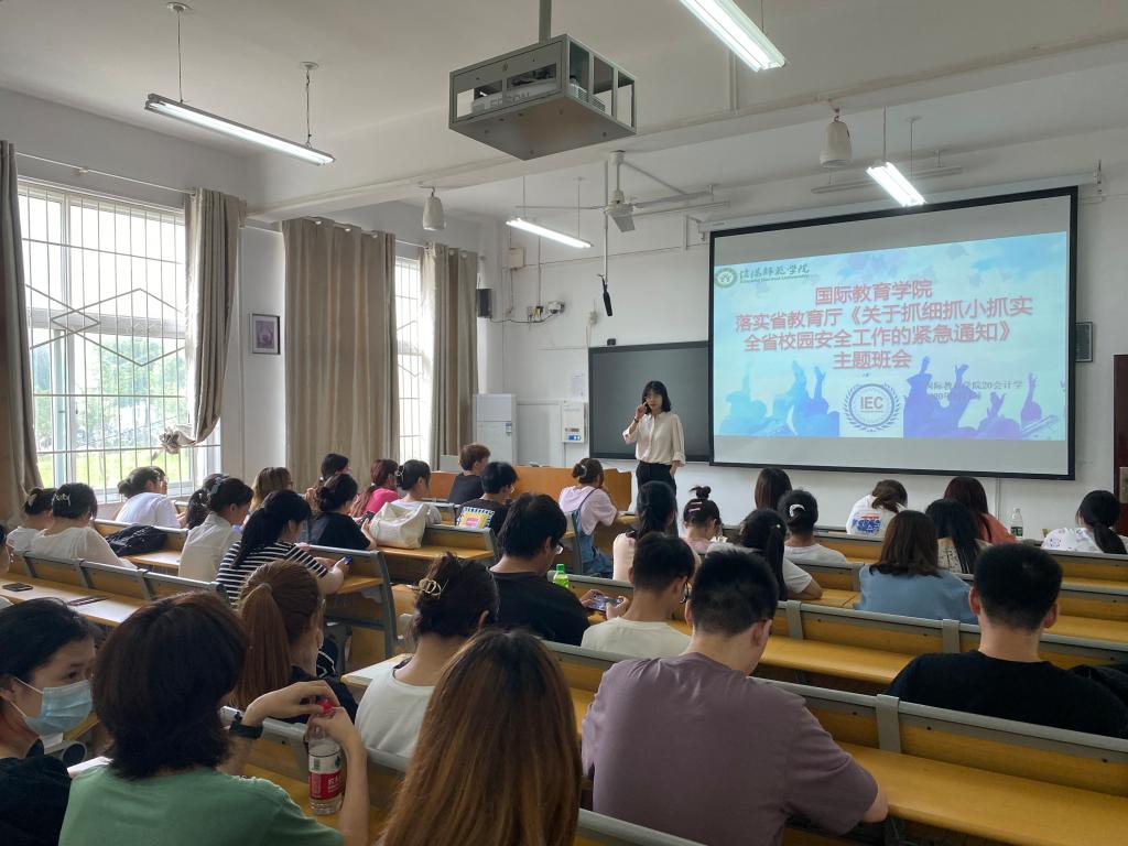 会议伊始,沈老师强调,根据学校相关规定,将暑假时间定为7月3日至9月3日,同学们未经允许不得提前返校,须根据学校规定于9月4—5日及时返校;暑期期间,同学们须严格遵守国家新冠肺炎疫情防控要求,坚持每日上报健康信息,避免出境或前往中高风险地区,避免前往人员密集场所,避免跨省市流动,离校及返校过程需全程佩戴口罩;居家期间养成勤洗手、勤通风、勤锻炼的好习惯,积极配合当地防疫部门工作。