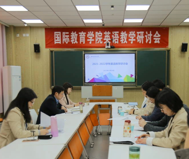 11月26日下午,beat365正版唯一官网必一2021-2022学年英语教学研讨会在逸夫楼201举行。院长李保红,副院长姚光金、马晓欢,英语教研室、教学部等部门老师以及部分美国项目学生代表出席,韩国语教研室代表列席会议。会议由姚光金主持。