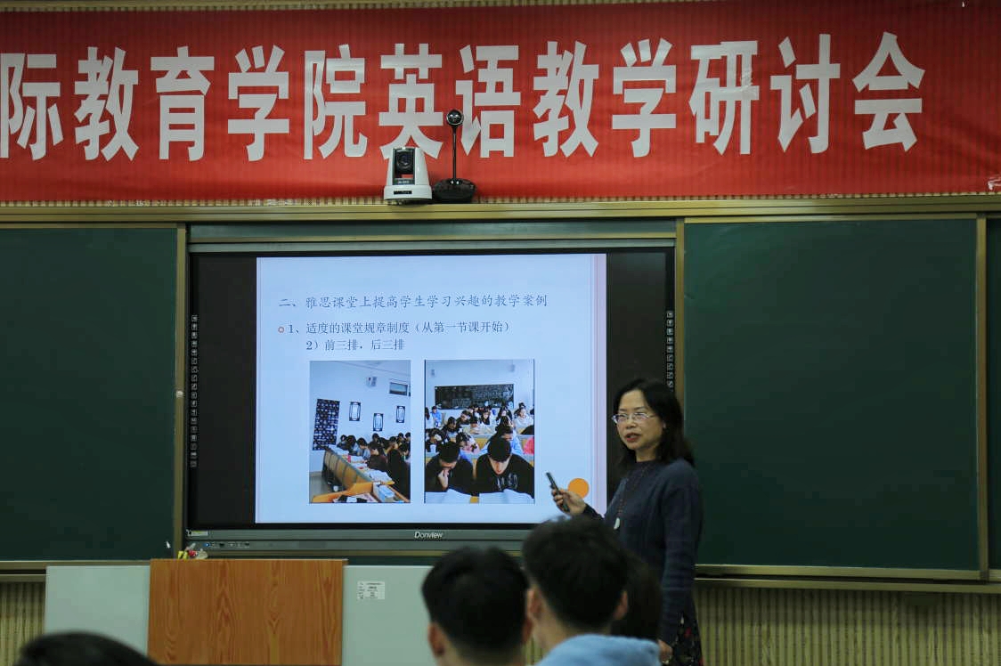 与会者针对beat365官网学生英语听说读写水平、教学现状、存在问题及教学法进行了深入研讨。外国语学院杨恩莲、国教院英语教研室李斐然、司文政、李津琪四位老师分别发言。他们根据雅思英语考试要求,从听、说、读、写四个方面,结合调查数据,科学准确地分析了目前beat365官网学生的学习需求、英语教学存在的问题和今后改革提升的方向。教师发言之后,领导老师与学生代表进行了亲切交流,认真听取了他们的建议和意见。