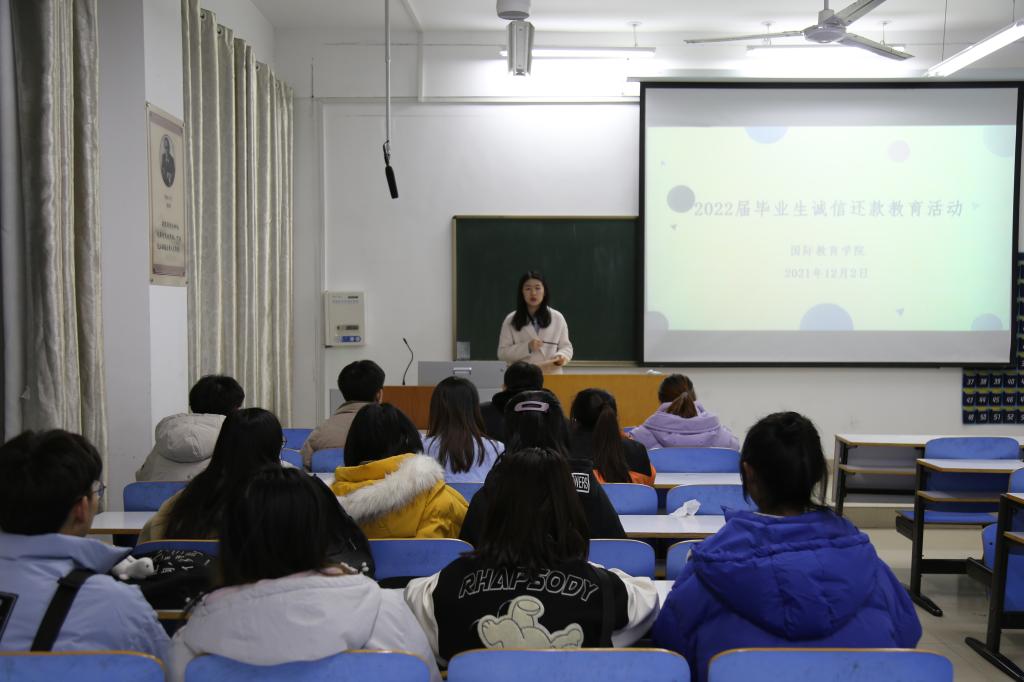 为认真做好诚信还款教育工作,确保2022届助学贷款毕业生还款顺利进行,我院于12月2日下午6点在逸夫楼205教室召开2022届贷款毕业生诚信还款教育主题活动。