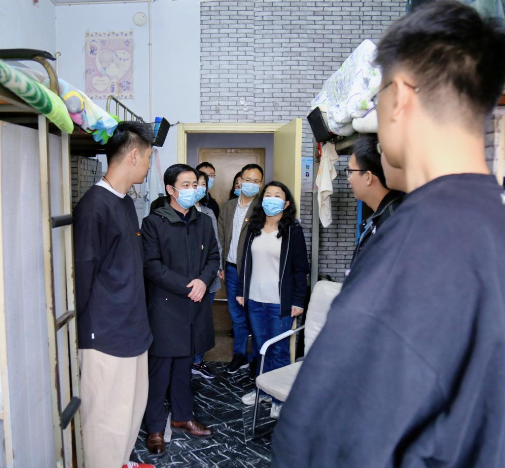 为进一步细化落实学校《关于开展疫情防控“十严查”的通知》文件精神,院党委书记李舟坚持靠前指挥,带领学院班子成员、辅导员、班主任于5月10日上午走访学生宿舍,严格检查学生疫情防控工作。