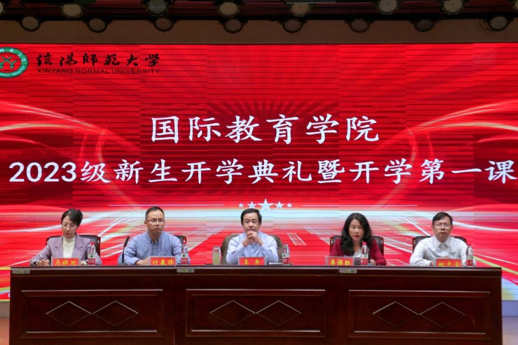 10月12日晚,beat365正版唯一官网必一在理科楼报告厅隆重举行2023级新生开学典礼暨开学第一课。党委书记李舟、院长李保红、党委副书记付春锋、副院长姚光金、马晓欢出席。语言课教师、辅导员班主任及2023级全体新生参加。付春锋担任主持。