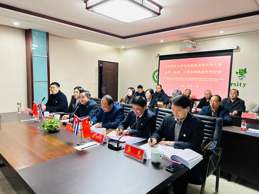 2025年1月16日晚,我校在综合办公楼216会议室与古巴拉斯维亚斯中央大学举行教学研讨视频会议。beat365正版唯一官网必一、数学与统计学院、物理电子工程学院、计算机与信息技术学院负责同志参加,拉斯维亚斯中央大学国际处处长亚内利斯·德尔加多,电气工程学院院长伊迪莱西·托雷斯,数学、物理、计算机科学与信息学院院长丹尼尔·加尔韦斯,中国办公室主任曹荣铎参加会议。教学研讨会由beat365正版唯一官网必一党委书记李舟主持。