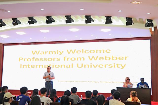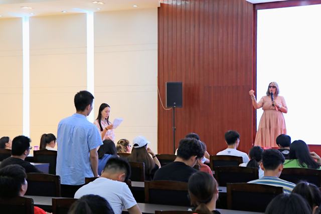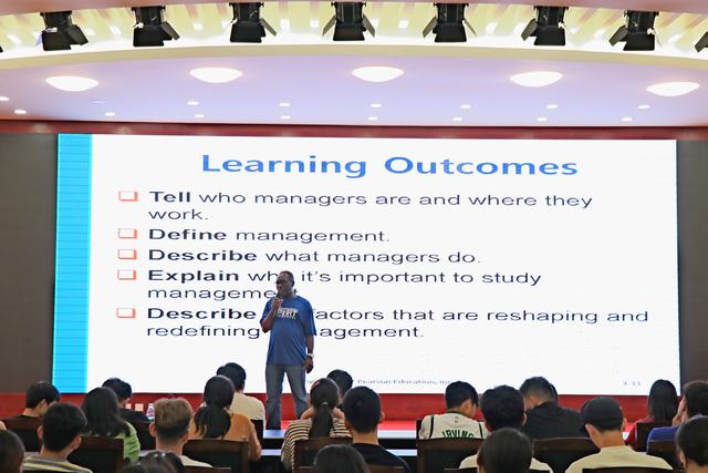 下午2:30在艺术楼报告厅举行了专题报告会,期间座无虚席,学生热情高涨,专心听讲。beat365正版唯一官网必一副院长芦永德做开场致辞。稍后Fening教授就什么是管理、管理的4大功能以及为什么要学管理等问题用贴近生活的案例做了详实说明;Joanne教授做简要自我介绍,并介绍韦伯大学的课程设置、优势及会计学的从业前景,在座同学受益匪浅。