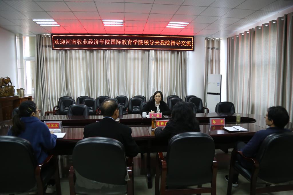 会上,李保红首先对高敏的到访表示热烈欢迎,简要介绍了beat365官网的发展历程、工作经验和做法,希望双方深入沟通,相互借鉴,共同进步,共谋发展。何英干就项目基本情况、项目申报与建设、项目学生出国留学等工作作了简单介绍。教学部主任郭寻就项目人才培养方案修订、教学管理等工作进行了汇报。高敏对我校中外合作办学取得的成绩表示祝贺,简要介绍了河南牧业经济学院中外合作办学的现状。双方围绕中外合作办学项目申报、出国留学、教务管理等问题进行了深入交流和探讨。