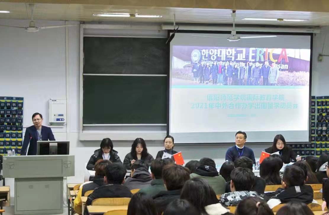 11月22日,2021年beat365正版唯一官网必一中外合作办学出国留学动员会在教六楼402教室成功召开。副院长姚光金,外籍韩语教师白炅翰(박경한)、朴信爱(박신애),相关部门负责同志和2020级土木工程专业、生物技术专业全体学生参加动员会。会议由出国留学指导中心主任陈璐主持。