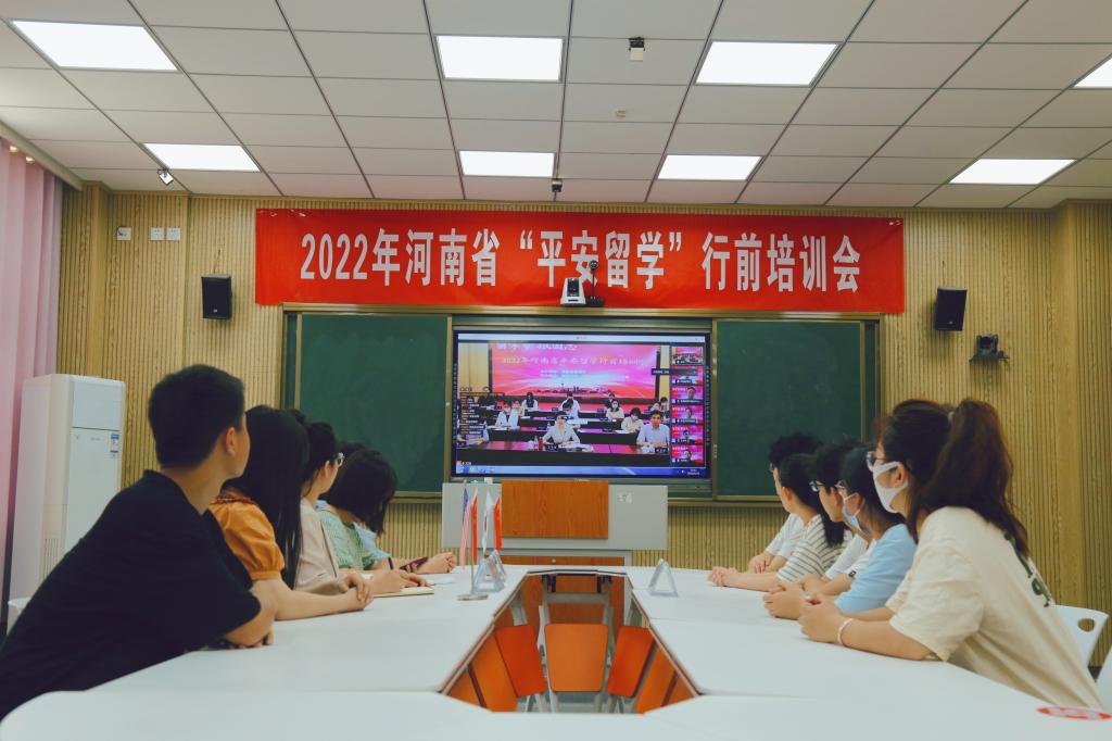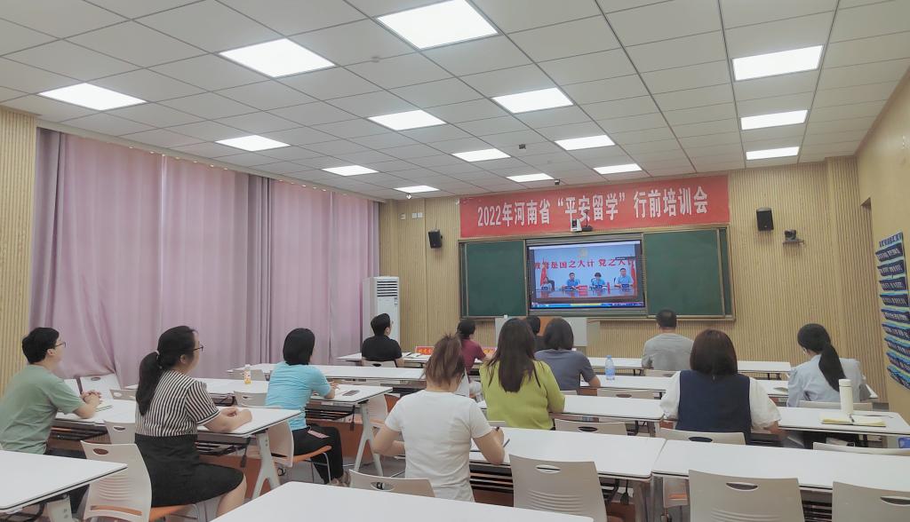 2022年5月31日、6月30日,beat365官网分别在beat365正版唯一官网必一分会场参加2022年河南省“平安留学”出国留学培训会。学院党委书记李舟、院长李保红、副书记付春锋、副院长姚光金和部分教职员工、2022年拟出国留学学生参加了培训会。