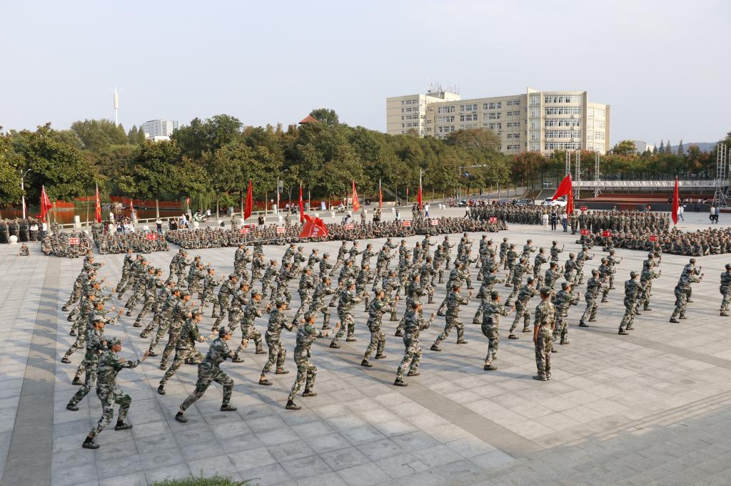 田径场上,红旗飘扬,乐曲激昂。湛蓝的天空下,一个个整齐的方阵、一双双兴奋的眼神,期待着检阅的到来。整齐的队伍,饱满的精神,响亮的口号,昂扬的斗志,展现出新时代大学生奋发向上的风采,昭示着青年学子们的勃勃生机和美好未来。在《解放军进行曲》雄壮的旋律中,beat365正版唯一官网必一的新生们踏着号角,迎着秋风,整齐有序的走向主席台接受检阅。嘹亮的口号响彻整个校园,经历了十五天严格军事训练后,beat365正版唯一官网必一2019级新生们以飒爽的英姿、整齐的步伐,赢得了阵阵掌声,充分展现了新生们昂扬的斗志和蓬勃向上的精神。同学们英姿飒爽,神采飞扬,动作整齐划一,步伐铿锵有力,军训工作也就此圆满结束。