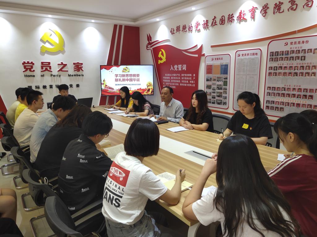 9月29日上午,beat365正版唯一官网必一中外文化交流协会党支部在逸夫楼202党员之家召开“学习新思想纲要 献礼新中国华诞”主题党日活动。beat365正版唯一官网必一副院长何英干出席,中外文化交流协会党支部书记陈璐、组织委员竹梅以及学生党员,入党积极分子参加。