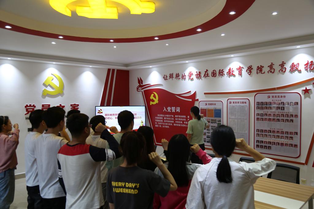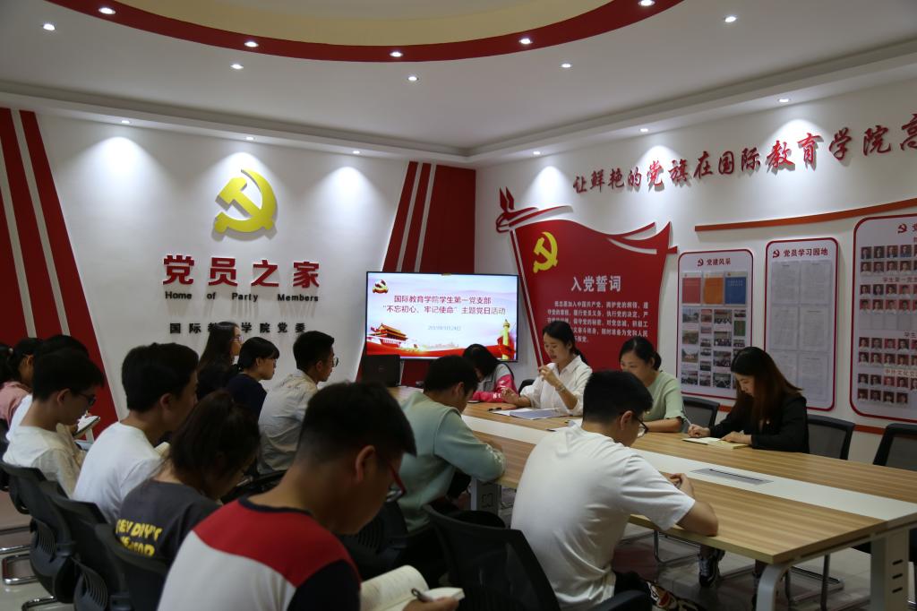 9月24日下午,学生第一党支部在逸夫楼202党员之家开展主题党日活动。会上,组织委员张雨雪传达了《中共beat365正版唯一官网必一委员会关于开展“不忘初心、牢记使命”主题教育的实施方案》精神;全体党员观看了《初心永恒》专题纪录片;党员交流发言;支部书记余艳楷对本次“不忘初心、牢记使命”主题教育支部以及党员层面需要开展的工作进行了强调,希望每名党员能够认真落实“守初心、担使命,找差距、抓落实”总要求,制定一个学习计划,列出一个问题清单,开展一次志愿服务,实现一次思想政治洗礼;全体党员重温了入党誓词。