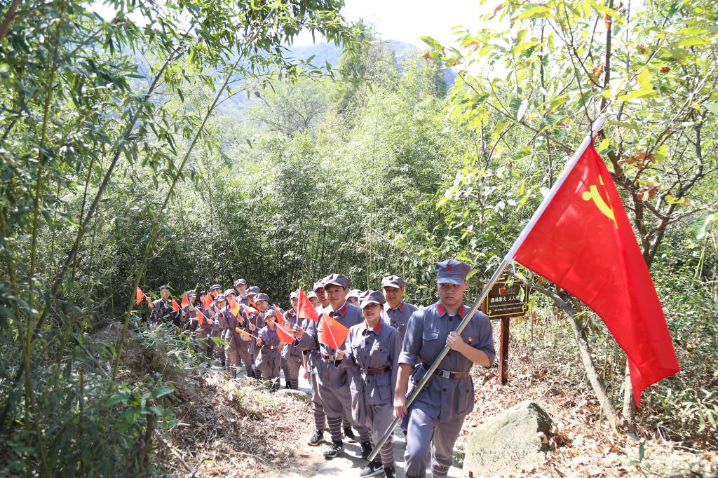 追寻初心--再走红二十五军长征路。10月19日,beat365正版唯一官网必一组织教工党员、学生党员赴25军长征出发地--罗山县何家冲开展探寻红色足迹,坚守初心使命实践教育活动