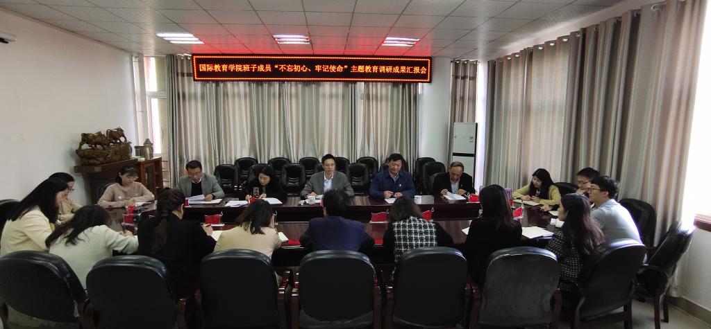 10月29日下午,国际教育学院班子成员“不忘初心、牢记使命”主题教育调研成果汇报会逸夫楼302会议室召开。校主题教育第巡回指导组副组长、学生处副处长陈铭出席指导,学院班子成员以及全体教职工参加会议由党委书记张震主持。