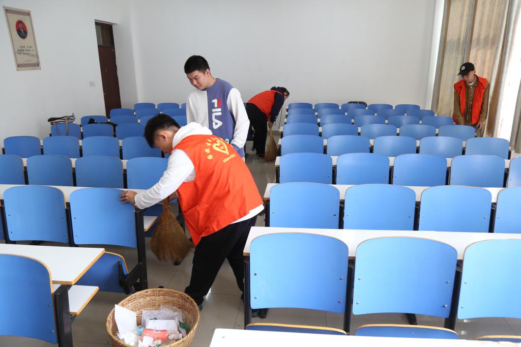 文明清洁教室志愿服务活动。学生党员、入党积极分子利用每周二集中打扫逸夫楼教室卫生对每个教室的手机袋进行检查,及时将破损的手机袋进行更换,开展教室桌椅维修活动,为椅子的轴承打上黄油避免上课发出响声,为学生上课提供一个干净整洁的环境;各班自发在教室里制作黑板报,积极宣传党的方针政策,积极营造良好的学习氛围。