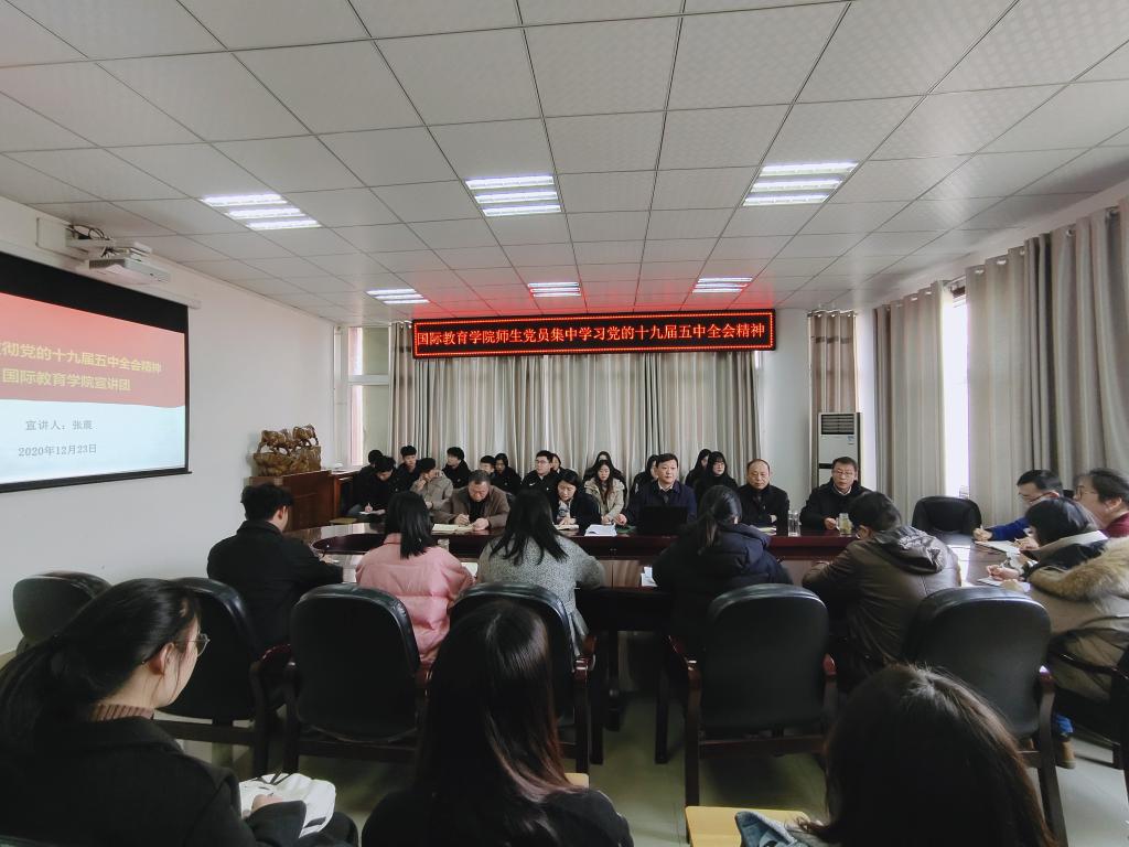 12月23日,beat365正版唯一官网必一在逸夫楼302会议室召开全体师生党员大会,专题学习党的十九届五中全会精神。学院领导班子成成员,全体师生党员参会。会议由学院党委副书记姚新春主持。