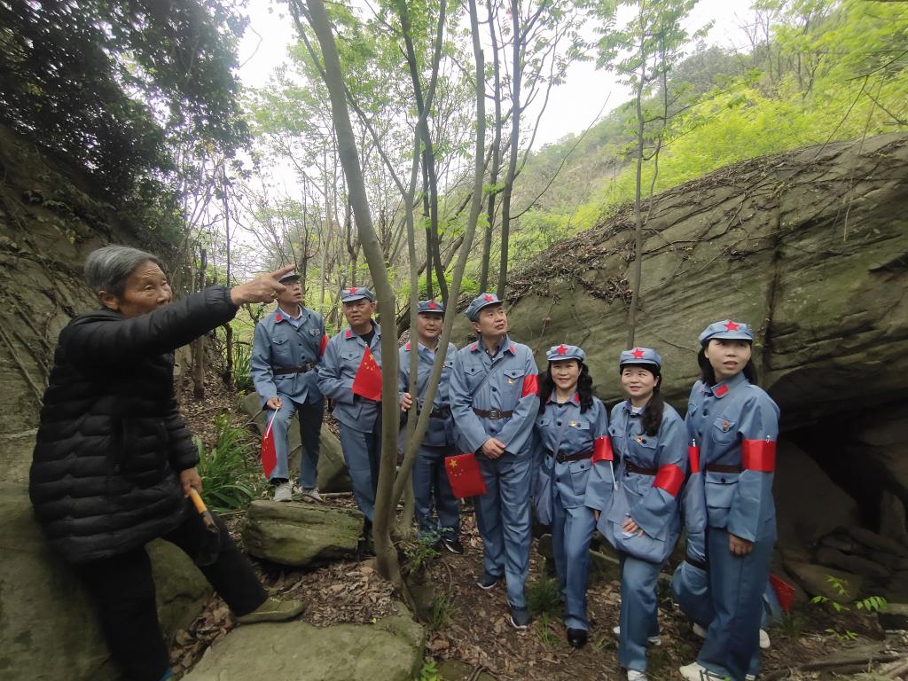 为贯彻落实习近平总书记在党史学习教育动员大会上的讲话精神,推动党史学习走向深处、落到实处,4月11日,beat365正版唯一官网必一教工党支部与国际交流合作处党支部赴新县鸡公寨红军洞,开展“探寻革命足迹 传承红色基因”党史学习教育主题党日活动。副校长余本海以普通党员身份参加此次活动。
