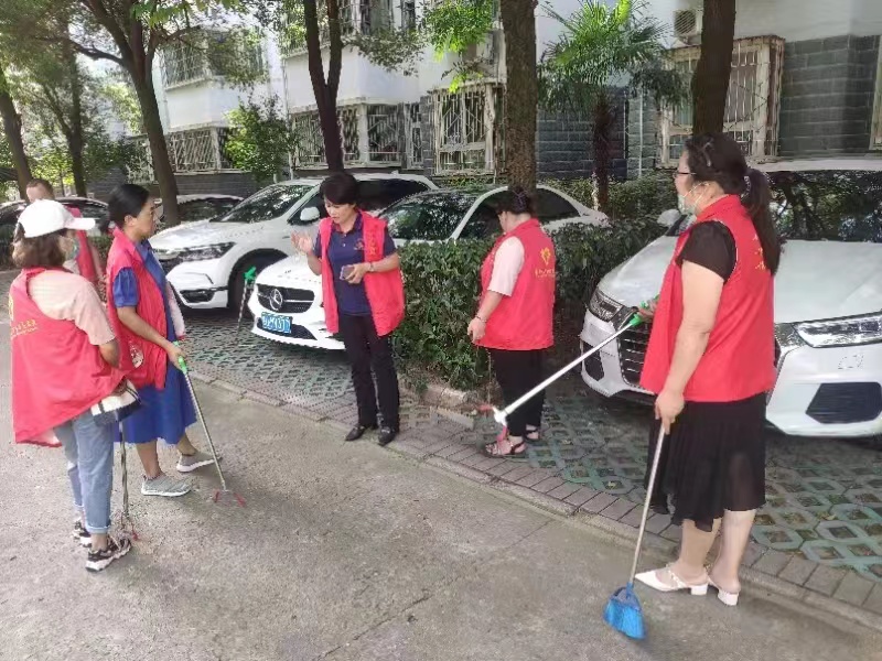 当天下午,教师党员队伍顶着炎炎烈日,在社区网格长带领下,分别前往茗阳天下社区第一网格、第二网格、第三网格开展志愿服务活动。志愿者们发扬“ 不怕苦、不怕累、不怕脏”的奉献精神,拿起扫帚、铲子、夹子等清洁工具,认真清扫社区卫生死角、排查飞线充电等易引发火灾的各类安全隐患、协助物业拆除各类易燃物品、劝阻社区居民车辆违规停放等违反交通规定的行为、开展卫生健康和疫情防控知识宣传,用实际行动影响带动社区居民树牢文明卫生意识,共同创建干净、整洁的居住环境。