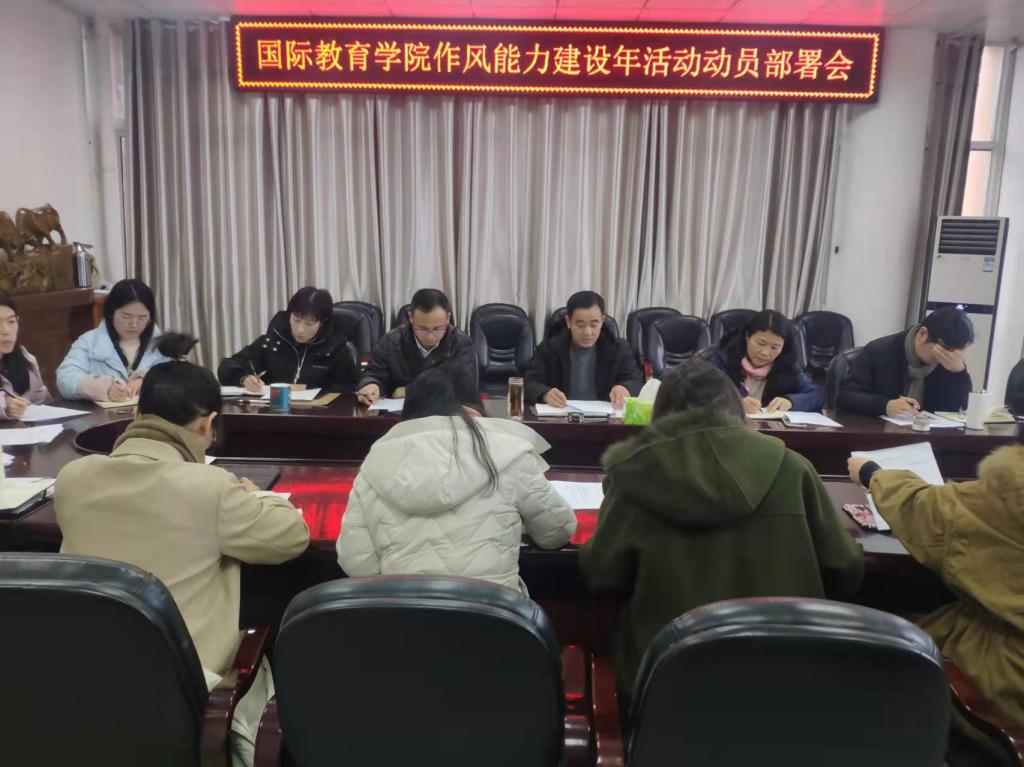 李舟就落实好学院“能力作风建设年”活动做出具体安排部署。他强调,一要加强学习。深入理解“能力作风建设年”的任务要求,深刻认识开展作风能力建设的重大意义,深度把握中国共产党加强作风建设的历史进程和基本经验,认真学习领会习近平总书记关于推进作风建设的重要讲话精神,学习领会习近平总书记关于坚持不懈抓好作风建设的重要论述。党员领导干部要在思想上高度重视,在行动上狠抓落实,把“能力作风建设年”活动作为当前的首要政治任务,严格按照三个阶段的工作部署,高站位推动、高标准开展、高质量落实。二要把握要点。党的作风建设的核心是保持党同人民群众的血肉联系,要牢固树立全心全意为人民服务的宗旨意识和公仆意识,贯彻落实以人民为中心的工作理念,大兴调查研究之风,在提升服务师生能力上下功夫。全院党员干部要深入检视为了谁、依靠谁、我是谁”的思想认识是否深刻、“权为民所用、情为民所系、利为民所谋”、“铁肩担道义”的为民情是否牢固、在想师生之所想,急师生之所急上下的功夫是否足够、摸师生民生问题,排难解忧聚焦的是否精准,采取的措施是否到位,俯下身子,躬身一线,真正把师生需求摸透彻,聚力解决师生反映强烈的现实问题。三要务求实效。要把开展能力作风建设同学院2022年度重点工作相结合,同推动事业发展相促进,以此次活动为契机,大兴务实进取之风,在提升破解中外合作办学事业发展难题的能力上下功夫。开展“守初心、强能力、正作风”主题教育和“三个一”主题实践活动,即体验一次红色历史、办一件实事、打通一个工作堵点。他要求全院党员干部要清醒认识世界百年未有之大变局的新形势、日趋复杂的国际环境和常态化疫情防控给中外合作办学带来的冲击和影响,进一步分析研判中外合作办学事业发展面临的新挑战、出现的新情况、产生的新矛盾,对如何继续加快和扩大新时代教育对外开放,如何保持与外方合作院校交流合作,如何一步加强项目内涵建设和扩大项目的辐射带动作用,如何进一步提高项目学生的国际化意识和出国留学愿望等问题进行深入思考、系统谋划,采取有效措施破解制约中外合作办学健康可持续发展的难点、堵点。