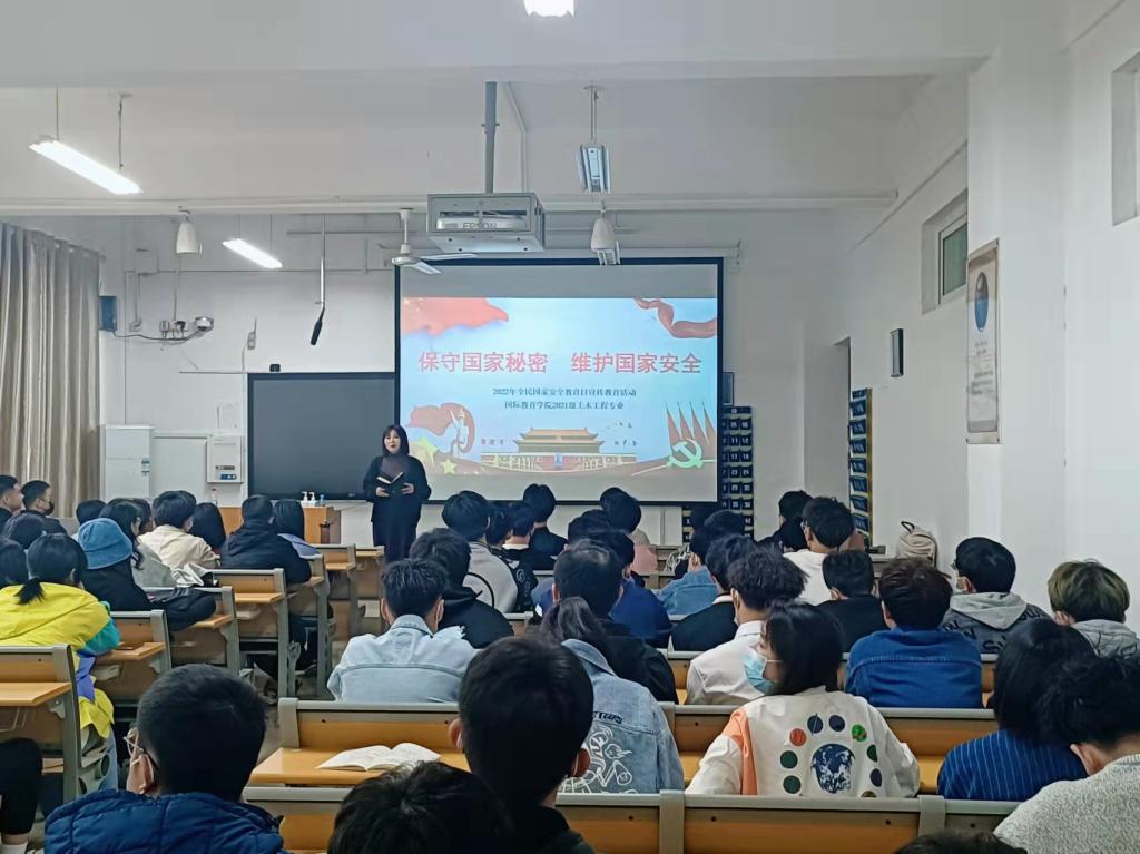 为推动国家安全宣传教育工作深入开展,大力宣传普及新时代国家安全发生的历史性变革、取得的历史性成就、积累的宝贵经验,着力推动大安全理念深入人心、落地生根,增强学生国家安全意识,树牢总体国家安全观,营造了国家安全人人有责,国家安全人人可为的浓厚氛围,学院辅导员、班主任通过召开全民国家安全教育日主题班会,将国家安全知识法律法规融入游戏、有奖竞答和趣味抢答等互动环节中,以寓教于乐的形式向学生讲解了国家安全知识,有效提升了学生的国家安全意识。