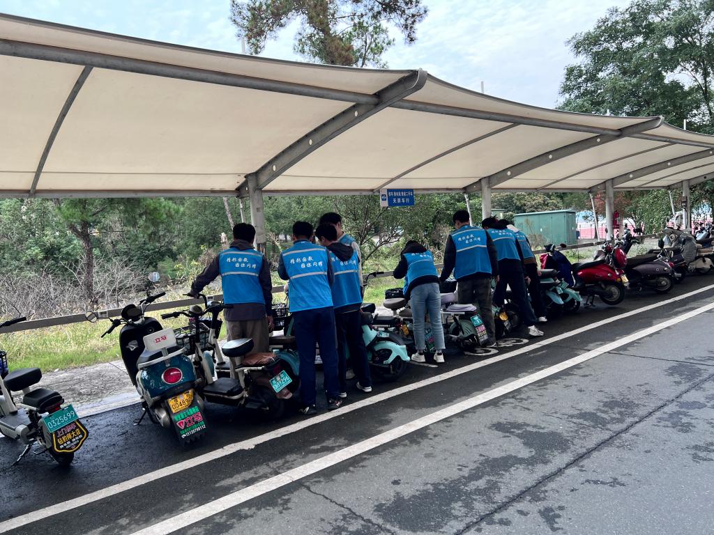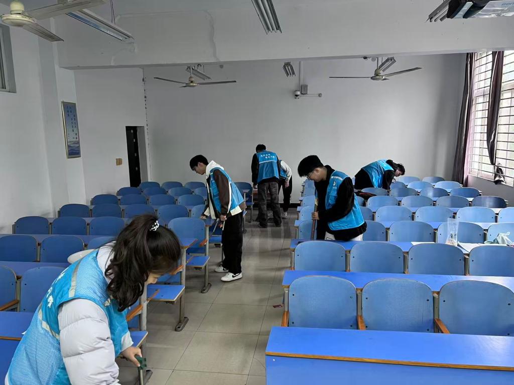 党员发展对象自教室清洁工作伊始,即以高度的责任感和饱满的工作热情投入劳动实践。有的负责清理讲台及多媒体设备积尘,有的专注清除教室卫生死角纸屑,还有的细致擦拭课桌椅表面污渍。全体人员分工协作、配合默契,充分展现了严谨细致的工作作风。经集中清理,教室环境得到显著改善,卫生死角全面消除。随后,全体人员转至俊采楼后电动车棚开展车辆停放秩序整治工作。重点完成电动车分类摆放、棚顶卫生清理及护栏擦拭等任务,并对散落落叶等杂物进行彻底清扫。通过团队协作,停车区域整体面貌得到有效提升。